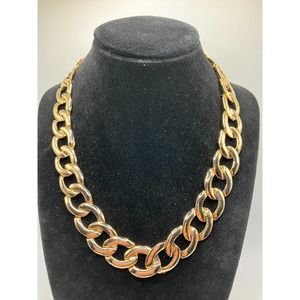 Necklace Vintage Cuban Link Metal Wide Winter Fall Bib Choker Gold-Tone 18"