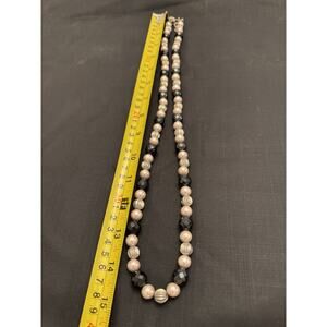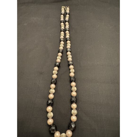 Necklace With Pearls, Onyx, And Silver Toned Beads.