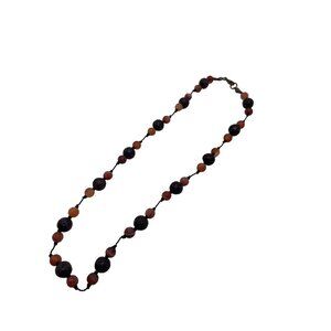 Black & Red Orange Beaded Necklace Lava Rock 925 Silver Clasp 16”.