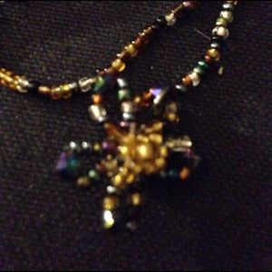 Darker multi colors glass seed beads . Flowers at ends can wear multiple ways to wear