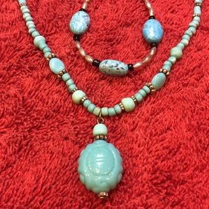 Silver and turquoise colored necklace and bracelet. Necklace is marked "Avon B.W." And measures 15" plus 3" extender. Bracelet is unmarked and measures 7". B25. Has been cleaned and is ready to wear!