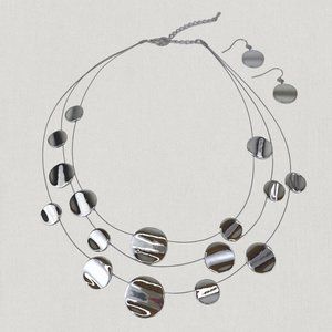 Necklace and Ear Set, Silver Tone, 3 Strand Illusion, Flat Bead, 16"-20"