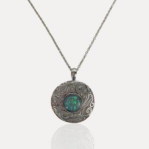 Necklace and Ear, Silver Antique Tone, Blue/Green Pendant, 18"-20"