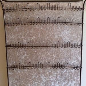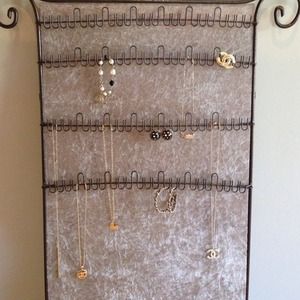 this cool little friend holds all your necklaces and earrings, keeping them tangle free and in sight! it is about 43" tall and 26" wide. *jewelry not included* 😜😊