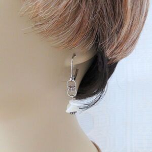 The necklace is 18 inches long and features a rectangular mock shell piece with a shell chip dangle that matches the earrings. The earrings are 1 3/4 inches long and have a lever back hook.