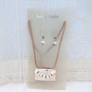 Necklace and Earring Set Women Boho Gift For Mom Mock Leather and Shell