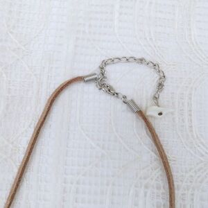 This Leather and Mock Shell Necklace and Earring Set for Women is perfect for those with a boho style. The brown leather cord with cream-colored main stones exudes a beachy, bohemian vibe. The adjustable necklace make it convenient to wear, and the jewelry set includes a necklace to complete the look. This trendy accessory set is a stylish addition to any outfit.