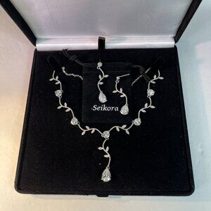 Necklace and Earring Zirconia Silver Art Party Formal Wedding Jewelry set
