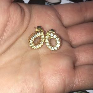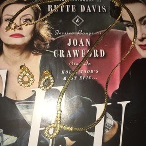 Matching necklace and earrings, vintage Avon, beautiful goldtone flat serpentine chain with pave crystal ribbon shaped accent and crystal earrings