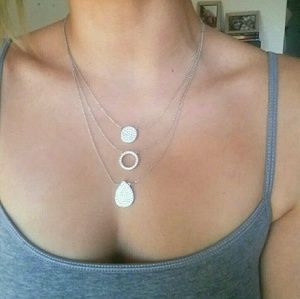 Jennifer miller triple strand necklace with tear drop earrings. Worn once, comes with original packaging. I have gauges so the earrings don't look good on me but they are featured in the 3rd picture. Open to offers.