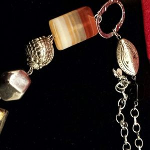 Necklace 33" long with rust, amber, black and multi shaped silver stones. Liquidating my Premier stock of items I don't or have never worn since no longer sell. Sold as is with no guarantee.