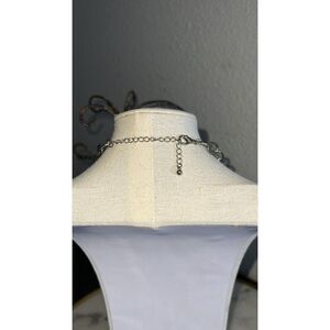 Necklace bib layered oval metal hammered 3 layers silver tone EUC 11”