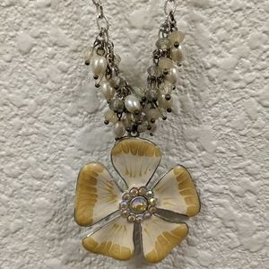 Set of 2 necklaces, one yellow flower and one silver heart, in great used condition, smoke free home