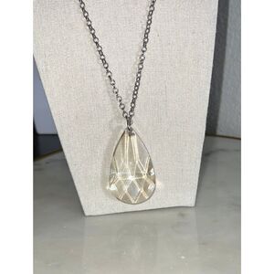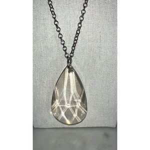 Necklace clear glass teardrop silver tone chain 17.5” EUC
