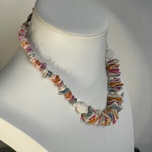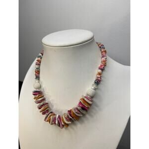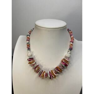 Necklace shell chips some dyed faded reds mauves blues tropical vacation vibe