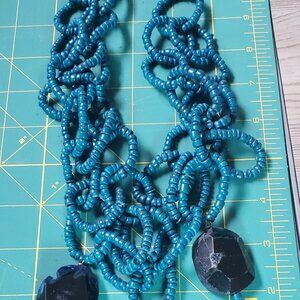 Anthropologie necklace. Blue and dark blue. Very light wooden blue beads. Medium length.