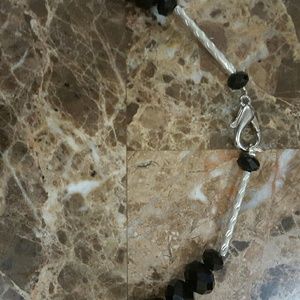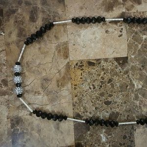 Necklace large Black and silver, silver tubes, black crystal with crab-type clasp, three silver balls in the middle, elegant and unique.
