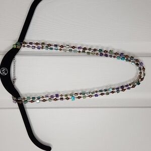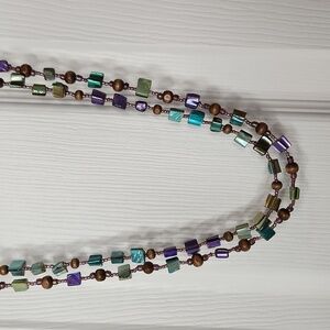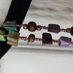 Necklace multi-colored iridescent shell bead multi strand purple turquoise green
