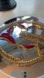 Necklace red enamel gold tone paired with long gold chain creating laye…