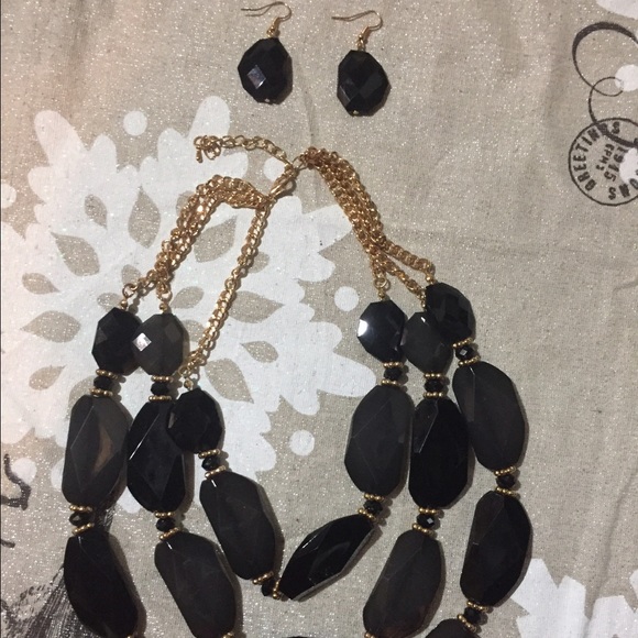 Gold plated fashion necklace set . Gold /black color . Great for all occasions!