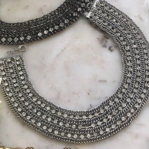 2 beautiful necklaces. One is silver and the other is more of a color black. The black one is missing 2 stones and the silver one is missing 1. Both are barely noticeable.