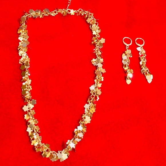 Gold necklace with earrings.