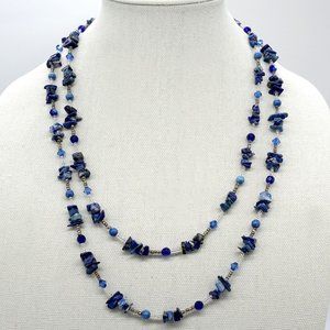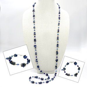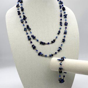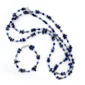 Necklace set with Lapis Lazuli chips and Lapis beads. Xtra long.