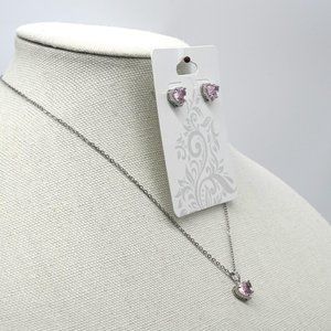 Necklace set with earrings and baby pink crystals.