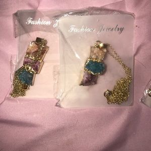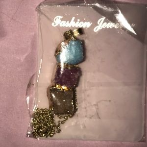 Necklace w/ Colored Textured Druzy Stone Pendant