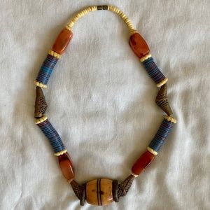 Gorgeous African Necklace with Amber, Ivory and Brass from Cameroon