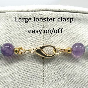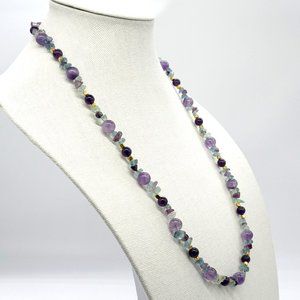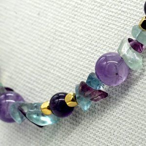 Necklace with Fluorite chips and Amethyst beads with gold accents.