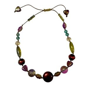 Necklace with Large Multicolor Round Beads including Heart Shaped Beads