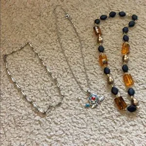Lot if 3 necklaces: gold and black jewel, Southwest and silver