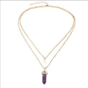Necklace double layered Moon&Crystal point Pendant