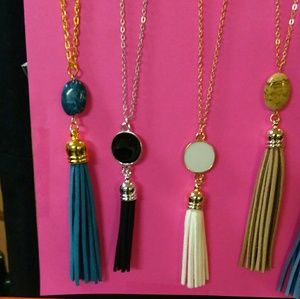 Beautiful necklaces . Comes in assorted colors with long chain. These are all new without tags.
