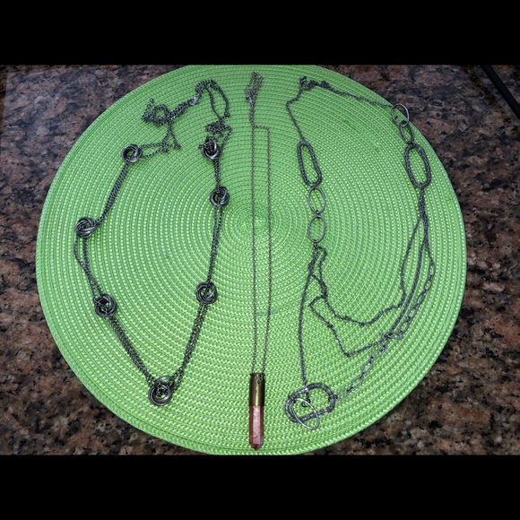 Miscellaneous necklaces. Middle necklace is a real stone and bullet casing. Hand crafted. You can buy them all for $13 or make an offer on individual or smaller groupings.