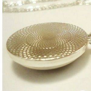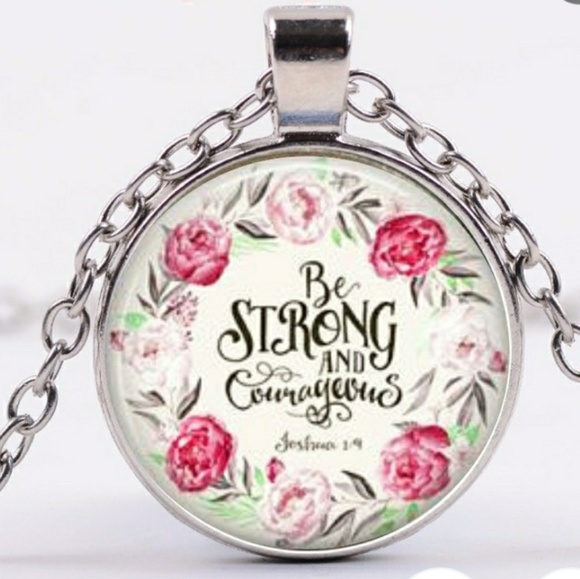 Scripture surrounded by flowers. Very pretty. Glass cabachon with silver chain.