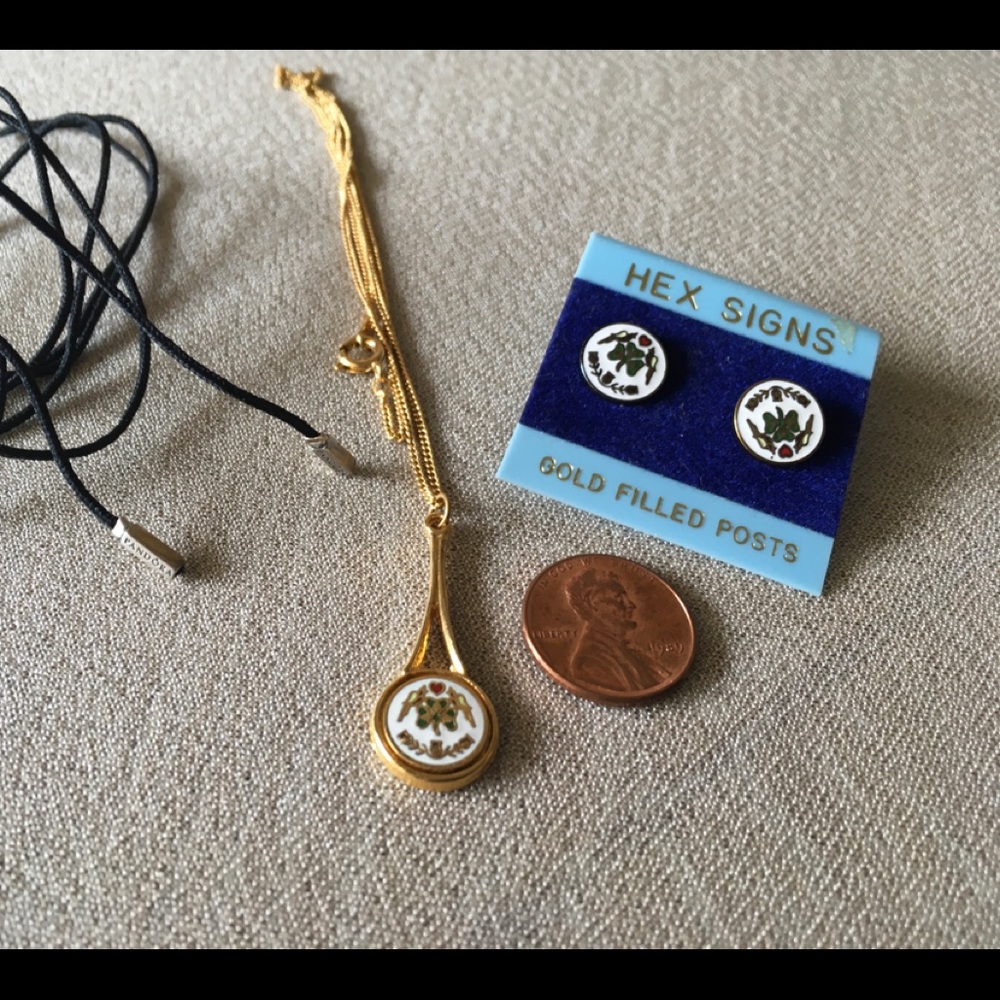 Celtic Necklace with red enamel Pandora Cord Necklace Hex Signs Necklace w/Earring Posts
