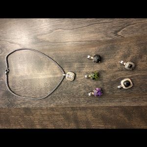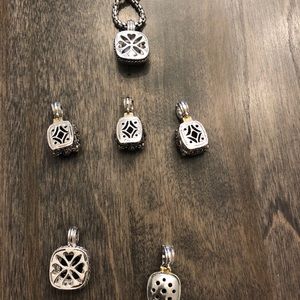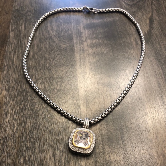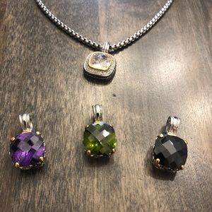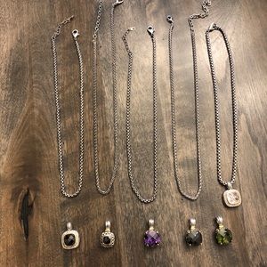 Six pendants and five necklaces that look like that famous designer but it’s faux . These are high end and radium will not turn . They have been worn many times . I never showered or slept in them. I also never had them on while hair spraying my hair etc . Like new!
