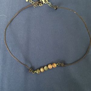 Rose engraved choker, beaded choker, and long gold necklace (costume jewelry)