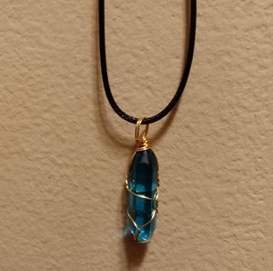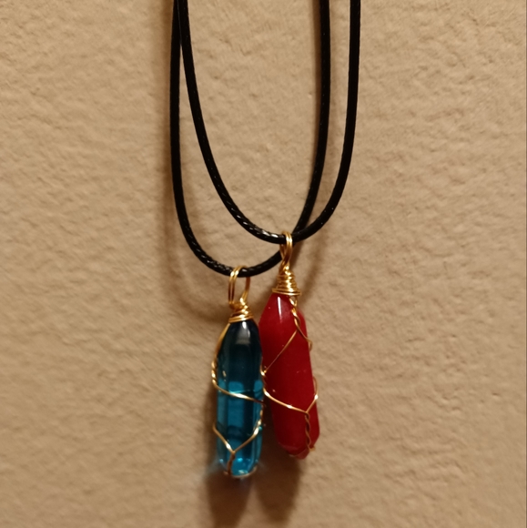 Blue and Red crystal pendants. Comes with rope necklace. Happy Shopping!