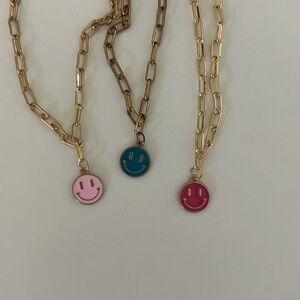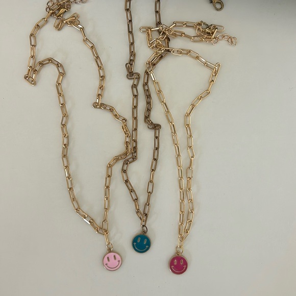 3 separate necklaces. The blue is a little worn, but the two pinks are brand new!