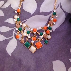 Black and gold necklace. Orange, green, brown and beige necklace.