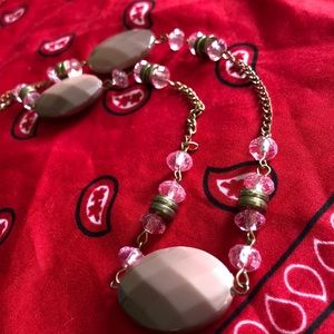 Pink and gold non adjustable necklace long pink crystals with light nude color to dark stones