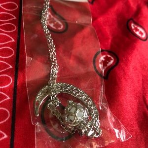 Silver adjustable blue color inside moon and star necklace moon crescent and white/blue gem inside star