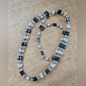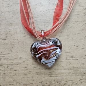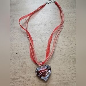necklaces, set of two. one glass heart rope/ribbon chain, the other is hematite (it is magnetic and shapeable) so it could probably be worn as a bracelet or necklace