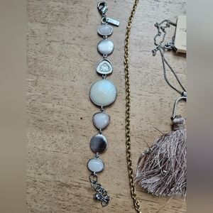 the bracelet is white House Black Market, stone...it is missing one stone.