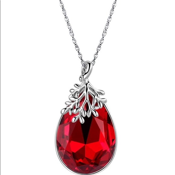 Austrian Crystal Necklace with Lucky Olive Leaf Birthstone Pendant, 14K White Gold Plated for Women 18 '' Girls Gift