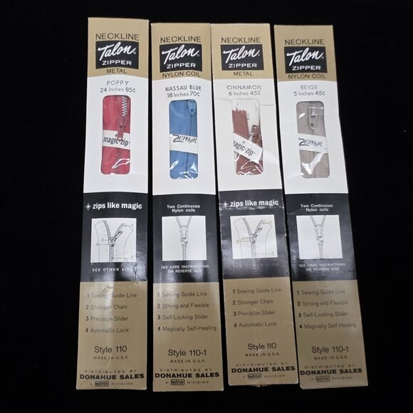 Neckline Talon Metal Nylon Coil Zippers Assorted Colors & Sizes NIB 1960s