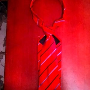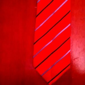 red with black and gray pinstripes,it's really a God looking tie pay close attention to the design patterns to appreciate the time and effort that was applied in making this neck wear.THIS TIE COMES PRE-TIED,select several and get a discount.